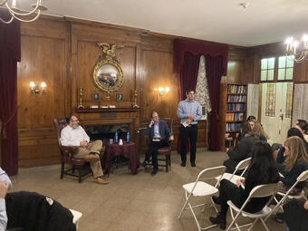 The event, which took place at the historic building of Congregation Shearith Israel, began with a light dinner reception. Following introductory remarks by Dr. Yisroel Benporat, a program officer and lecturer at the Straus Center, the program featured a conversation between Jortner and Straus Center Deputy Director Rabbi Dr. Stuart Halpern. Together, they explored the themes of religious liberty, patriotism, and the enduring impact of early American Jews.